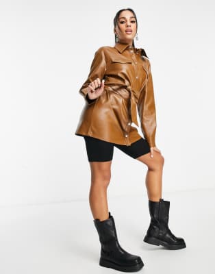 ASOS DESIGN leather look suit shacket
